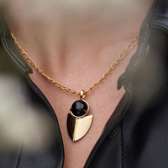 Collar con dije de escarabajo, inspirado en la leyenda maya del Makech, con ónix verde o negro, presenta un diseño deslumbrante. Simboliza amor eterno y sacrificio, aportando un toque de romance.