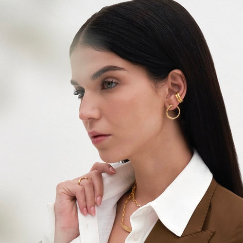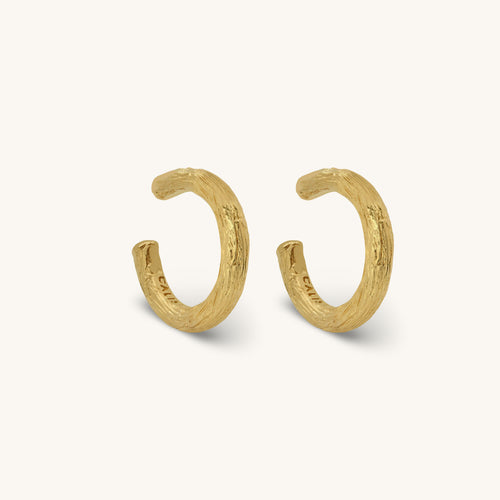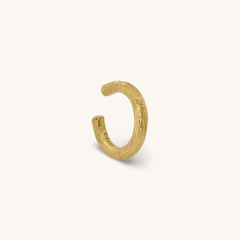 Earcuff con textura de rama de ceiba, elaborado artesanalmente en latón con chapa de oro de 22K.