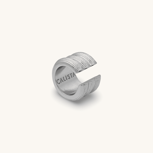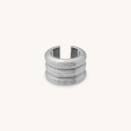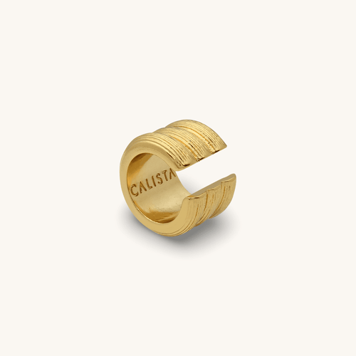 Este Earcuff, con tres bandas y textura rayada, evoca la generosidad y fertilidad de la diosa de los alimentos en la mitología japonesa.